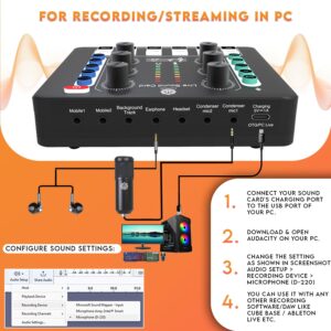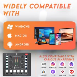 - Rich Sound Effects & 4 Voice Changer: The audio interface mixer has 4 sound variations (Female, Male, Child and Monster) and can produce 12 sound effects. Which is designed for recording, podcasting & live streaming